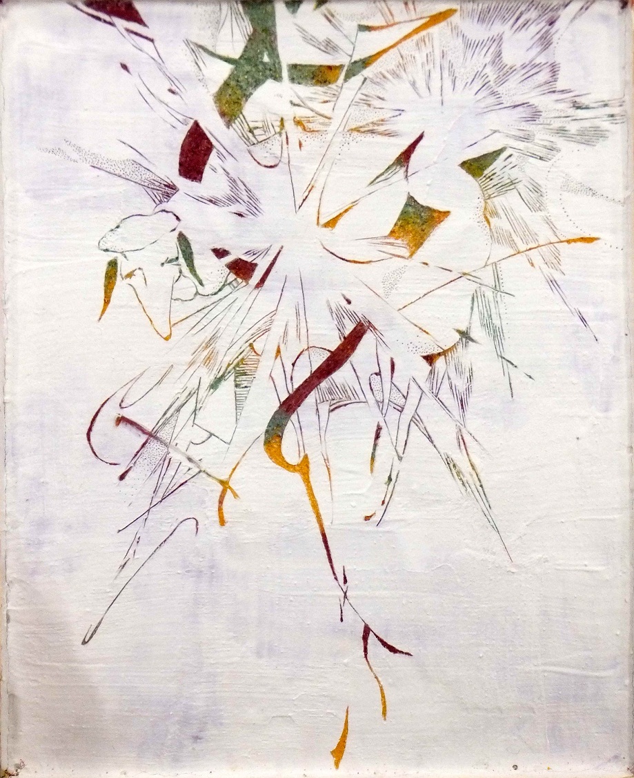色をつけたマルタの層の上に石灰を塗り、引っ掻いて下の色を出す方法です。